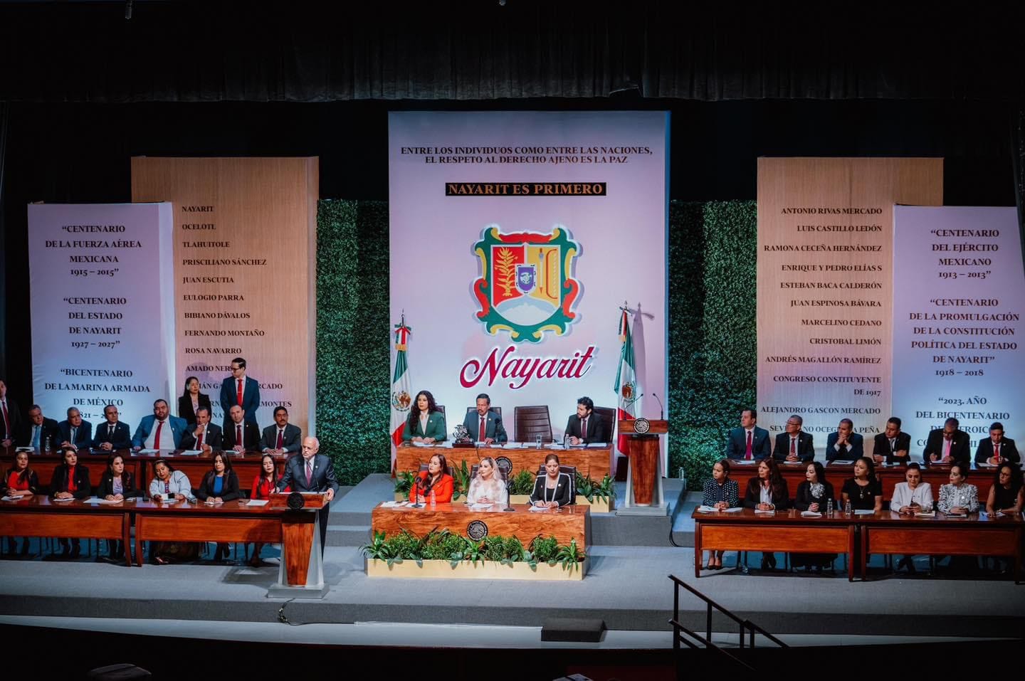 Tepic, Nayarit. 11 de octubre de 2024.- Este viernes, en Sesión Solemne del Congreso de Nayarit, el gobernador del estado, Miguel Ángel Navarro Quintero rindió su Tercer Informe de Gobierno en el Teatro del Pueblo, Alí Chumacero. De frente y con la convicción de que hoy Nayarit es invencible, el mandatario estatal mencionó lo que se ha hecho en diferentes sectores, acciones que han logrado cambiar la vida de las y los nayaritas.