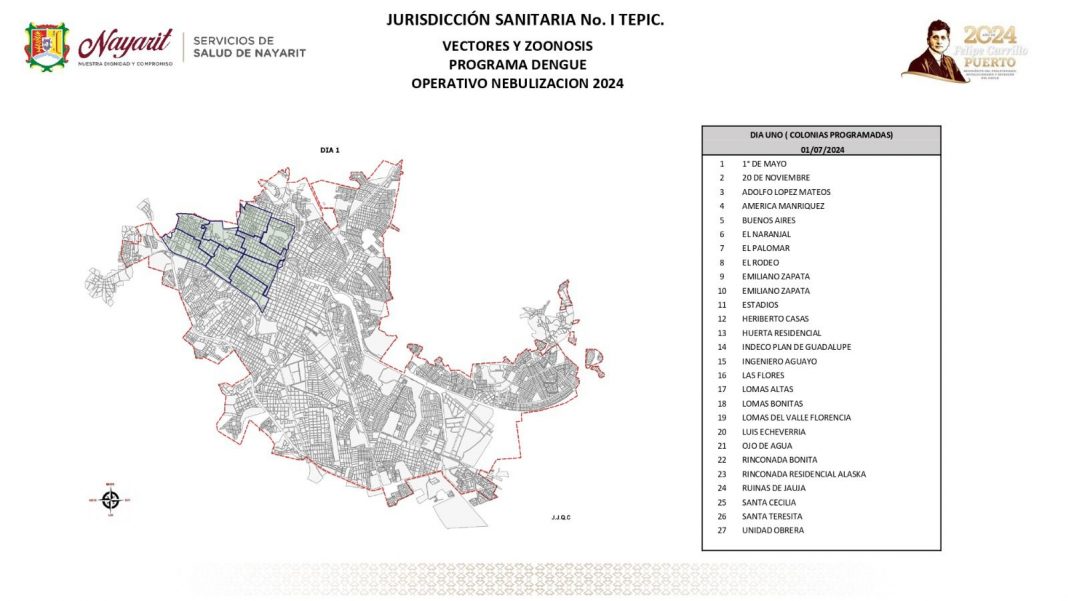 Este lunes 01 de julio, el gobierno del estado, a través de los Servicios de Salud y la Jurisdicción Sanitaria número 1, lleva a cabo la campaña de nebulización en las diferentes colonias de Tepic, por lo que se exhorta a la ciudadanía a abrir puertas y ventanas.