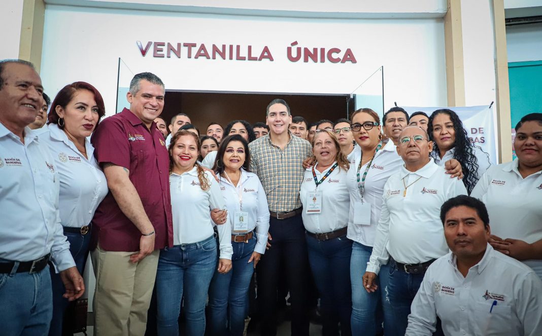 Acompañado de regidores, comerciantes y decenas de ciudadanos, el presidente municipal de Bahía de Banderas, Héctor Javier Santana García, inauguró la nueva Ventanilla Única de Padrón y Licencias, ubicada dentro de la Mega Soriana en Bucerías. Este nuevo espacio busca brindar certeza y facilitar los trámites a los comerciantes, haciendo los procesos más simples, digitales y accesibles para todos.
