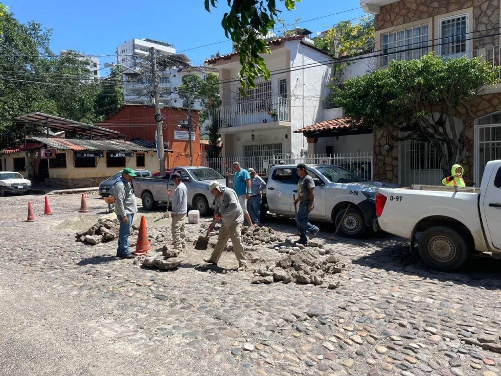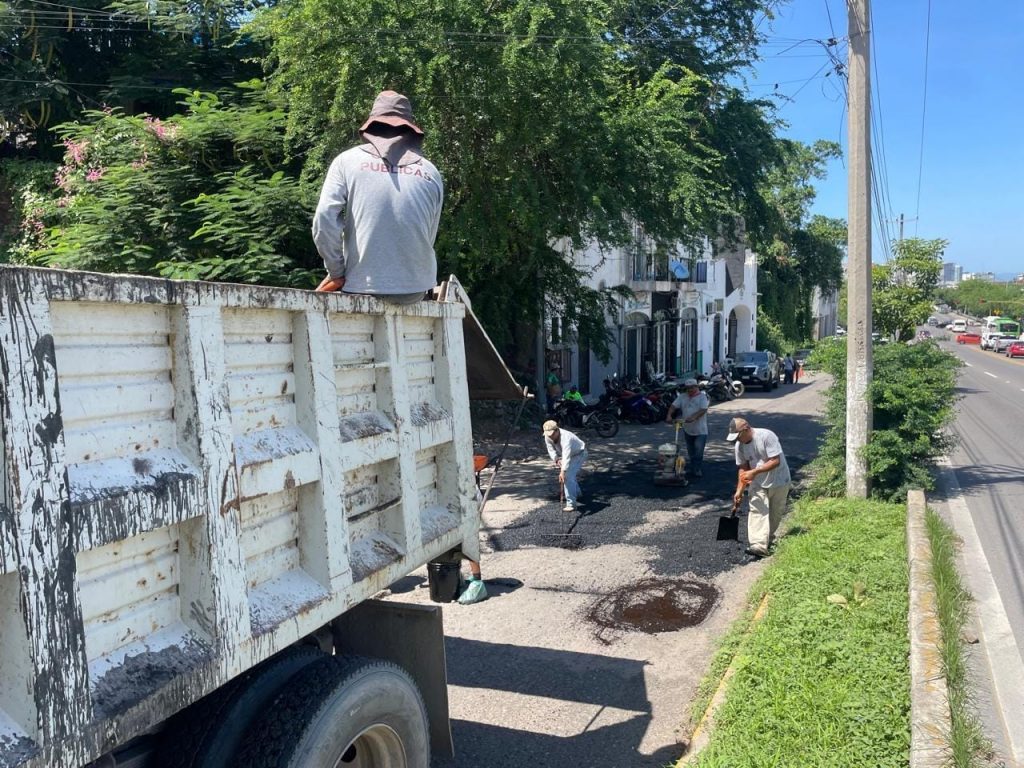 La Dirección de Obras Públicas ha comenzado las labores de bacheo en asfalto sobre la lateral del Libramiento Carretero, a la altura de la Cruz Roja. Además, se están realizando trabajos de bacheo empedrado ahogado en cemento en la calle Carranza, en dirección a la salida a Mismaloya, y en adoquín en diferentes puntos de la avenida Francisco Medina Ascencio, entre otras vialidades.
