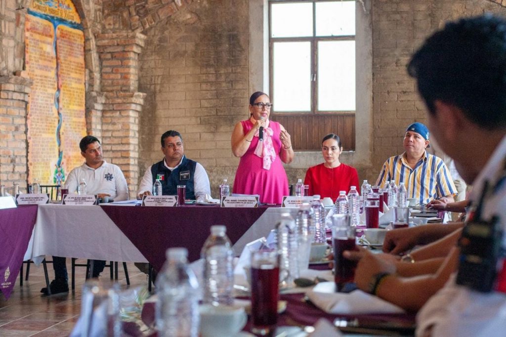La presidenta municipal de Xalisco, Anabel Guerrero, encabezó la reunión itinerante de la Mesa para la Construcción de la Paz y Seguridad, con la presencia de autoridades estatales, federales y municipales en materia de seguridad; además de alcaldes y representantes de gobiernos municipales de la zona centro de Nayarit.