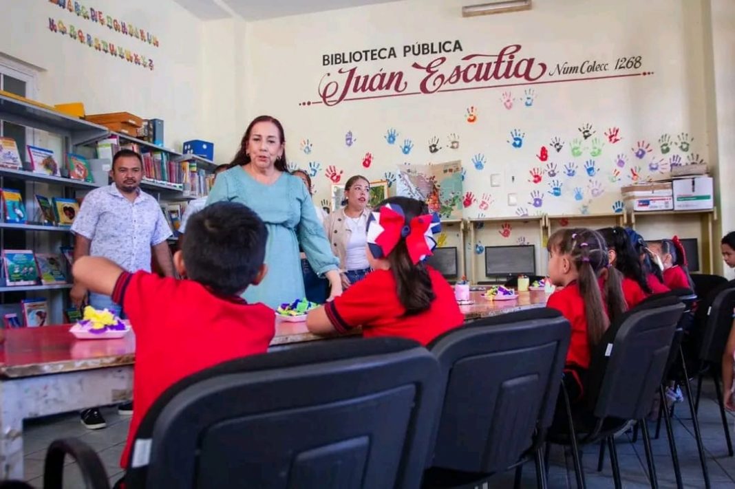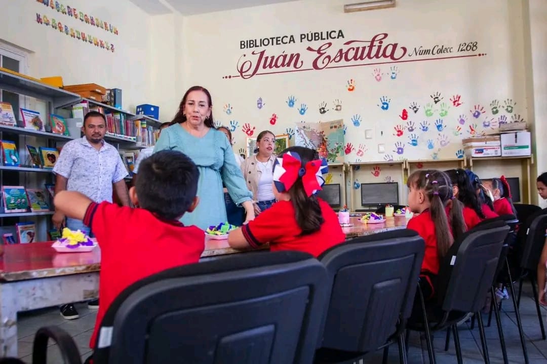 La presidenta municipal de Xalisco, Anabel Guerrero, dio la bienvenida a niñas y niños del preescolar «Rosaura Zapata», quienes visitaron en compañía de sus madres y maestras la Biblioteca Pública Municipal «Juan Escutia».