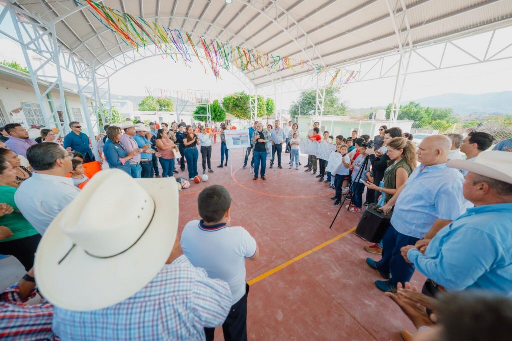 En Santa Cruz de Camotlán, la prioridad fue la primaria Francisco I. Madero, donde se inauguró un nuevo domo con una inversión de 2.4 millones de pesos. Este espacio permitirá que los alumnos realicen actividades físicas y cívicas protegidos de las inclemencias del tiempo.