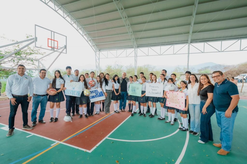 La gira continuó en Tepuzhuacán, donde la comunidad del plantel CECyTEN EMSaD recibió un nuevo domo para su cancha de usos múltiples, obra que representó una inversión de 3.4 millones de pesos.