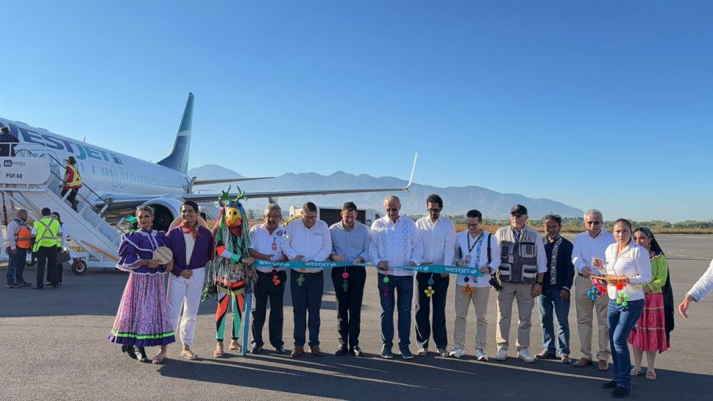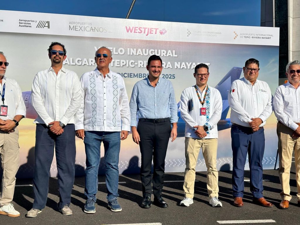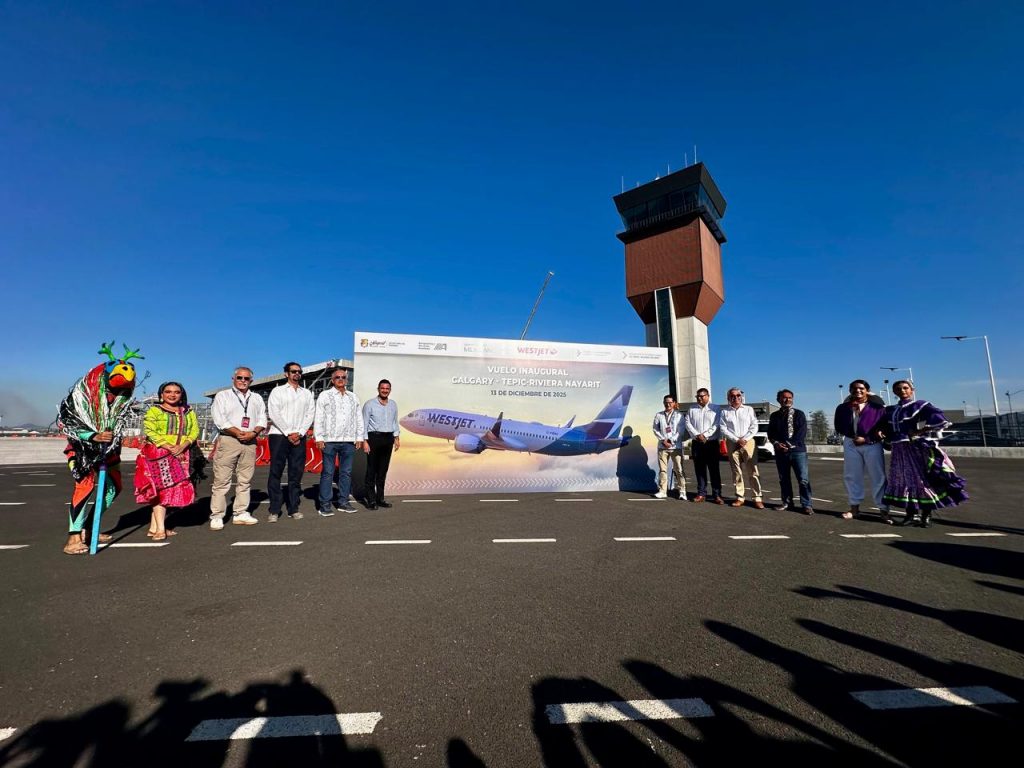 Tepic, Nayarit, 13 de diciembre de 2025.–Este sábado se consolidó un momento histórico para la conectividad aérea de Nayarit con la llegada del vuelo directo Calgary–Tepic/Riviera Nayarit, operado por la aerolínea canadiense WestJet, lo que reafirma el posicionamiento de la entidad como un destino turístico y de inversión de proyección internacional.