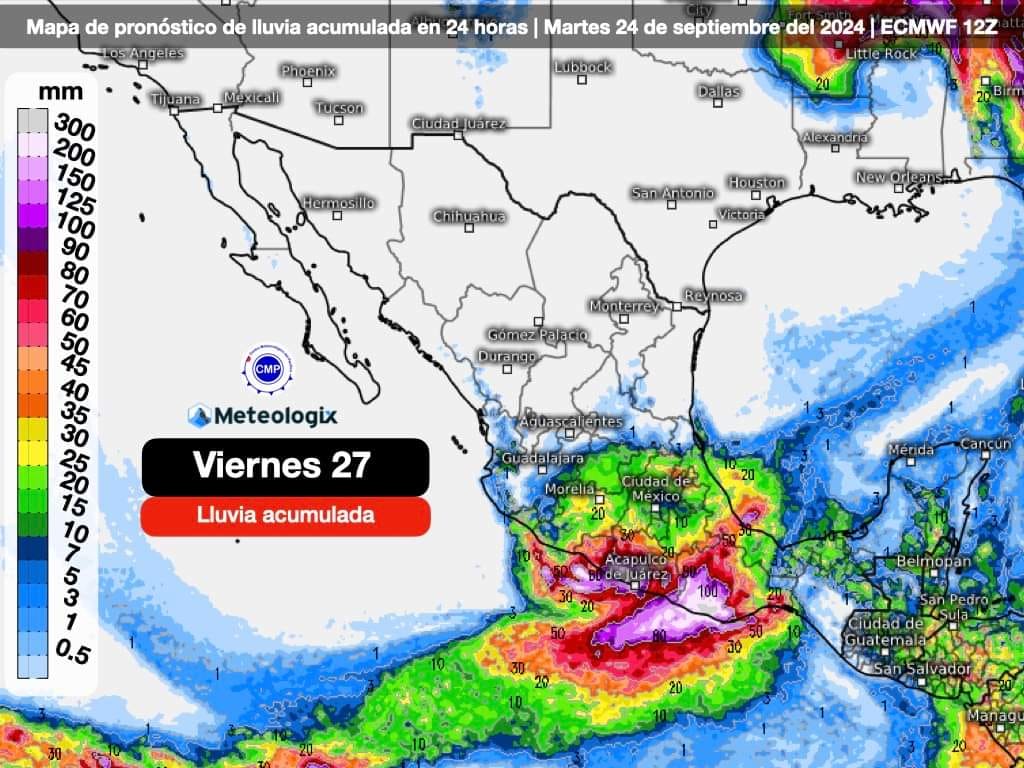 En los próximos días se intensificarán las lluvias sobre el sur, centro y sureste del país, se prevén lluvias intensas a torrenciales sobre los estados de Guerrero y Oaxaca. Para #Nayarit y Jalisco aumentarían las lluvias durante el sábado y domingo.