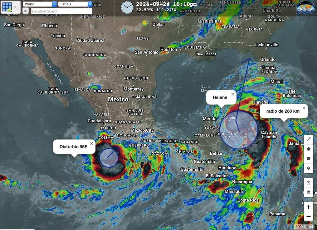 Tormenta Helene, pasará muy cerca de costas de Quintana Roo. Cruzará el canal de Yucatán. Se dirigirá a tocar la costa oeste de La Florida, EUA, mientras se intensifique a huracán mayor de categoría 3 antes de tocar tierra. Generará lluvias intensas sobre Quintana Roo.