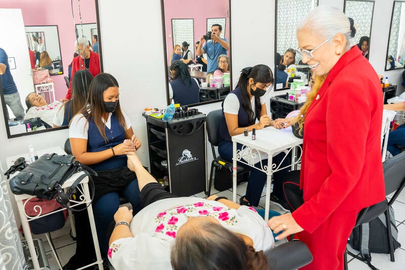 Durante la jornada, las beneficiarias recibieron masajes relajantes, cortes de cabello, manicure, pedicure, aplicación de uñas y pestañas, arreglo de cejas, entre otros tratamientos pensados para brindarles momentos de descanso, atención y autoestima.