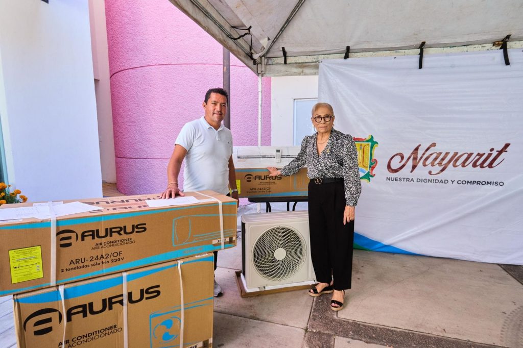 Entre estos apoyos se encuentran 60 pares de zapatos escolares para estudiantes del Cecyten EMSAD de la localidad de Jesús María en el municipio Del Nayar, cuatro aires acondicionados para el Jardín de Niños Tzicuri de la capital nayarita y dos más para la escuela Aurelio Navarrete Martínez de Trapichillo, los cuales permitirán a las y los pequeños contar con ambientes más cómodos para aprender y desarrollarse.