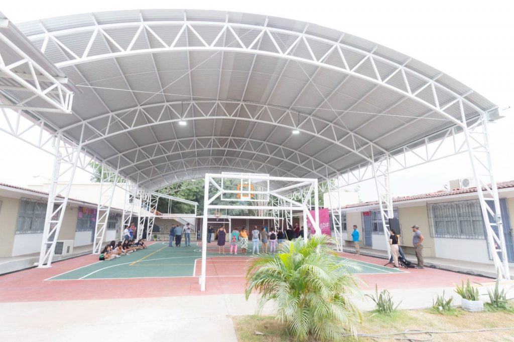 La doctora Beatriz Estrada Martínez, presidenta del Sistema DIF Nayarit, hizo la entrega oficial del Domo, Edificio A, e instalación eléctrica de la escuela primaria “Profesor Juan Hernández García” y de los baños y obras complementarias en el Colegio Nacional de Educación Profesional Técnica (CONALEP), en la localidad de Mezcales, municipio de Bahía de Banderas.