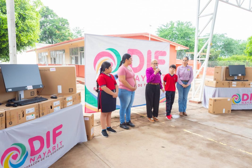“Es a través de gobierno del estado que se hace posible el venir a entregarles a ustedes estas computadoras. Ustedes saben que la prioridad para el gobernador, para mi esposo, es precisamente la educación y la salud para todos y cada uno de los ciudadanos del estado de Nayarit, de tal forma que precisamente es en la educación donde le hace mucho hincapié y está en verdad comprometido con todos y cada uno de ustedes, porque quiere que sus escuelas sean los espacios dignos para que puedan aprender y llevar a cabo todos sus estudios. Juntas y juntos habremos de encontrar mejores resultados y estoy segura de que trabajando en equipo vamos a transformar la vida escolar de cada uno de ustedes”, puntualizó la encargada de la asistencia social en el estado.