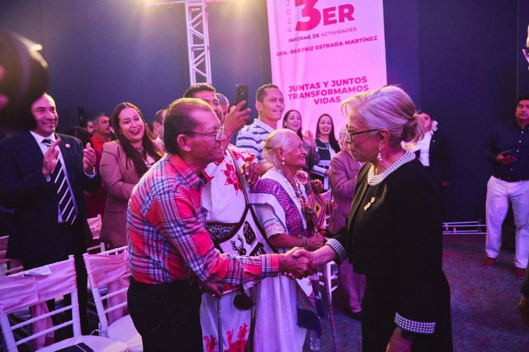 Tepic, Nayarit; 24 de noviembre del 2024.- Otorgar apoyos y servicios con humanismo y calidad para transformar la vida de quienes más lo necesitan, es un compromiso permanente para la doctora Beatriz Estrada Martínez, presidenta del Sistema DIF Nayarit, quien durante su Tercer Informe de Actividades, reafirmó encontrar en cada sonrisa y palabras de gratitud el mejor pago a su labor.