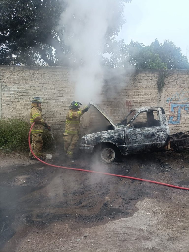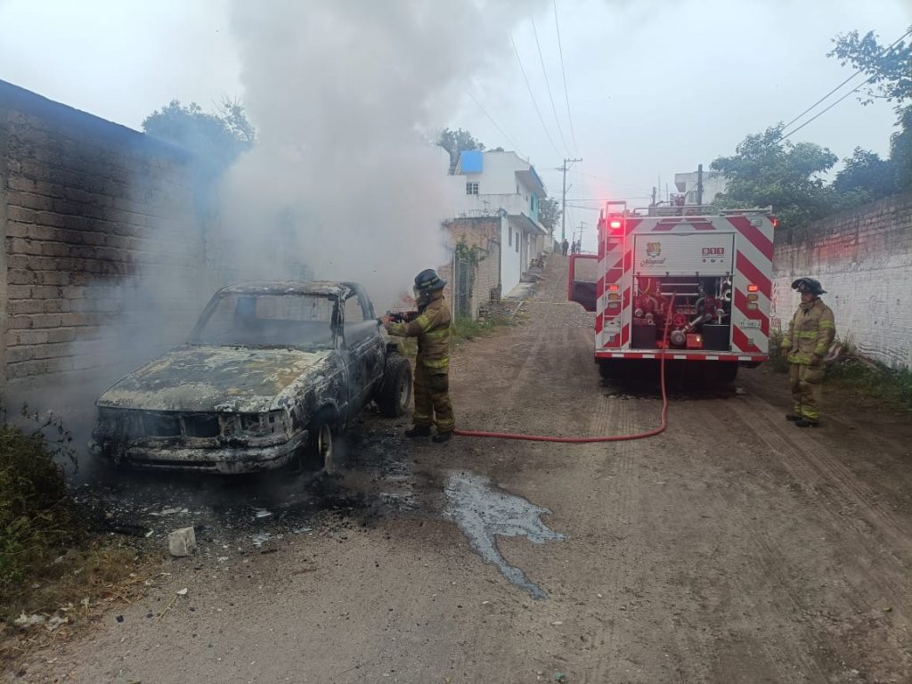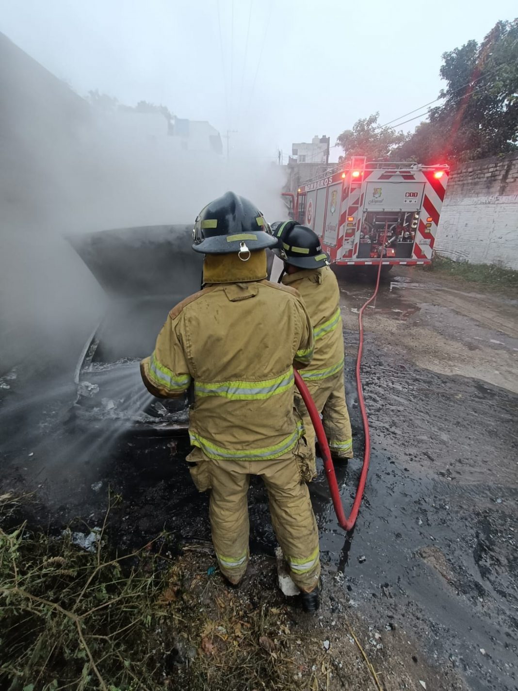 En atención a un reporte recibido a la línea de emergencias 9-1-1, en el que se informó sobre un incendio de vehículo en la colonia Lomas Altas, de Tepic.