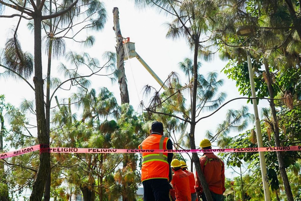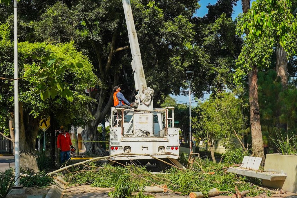 Tras identificar los árboles de riesgo, el equipo procedió a podar el exceso de ramas con el apoyo de grúas y motosierras, con el objetivo de proteger a la ciudadanía durante la temporada de lluvias y ciclones de 2024.