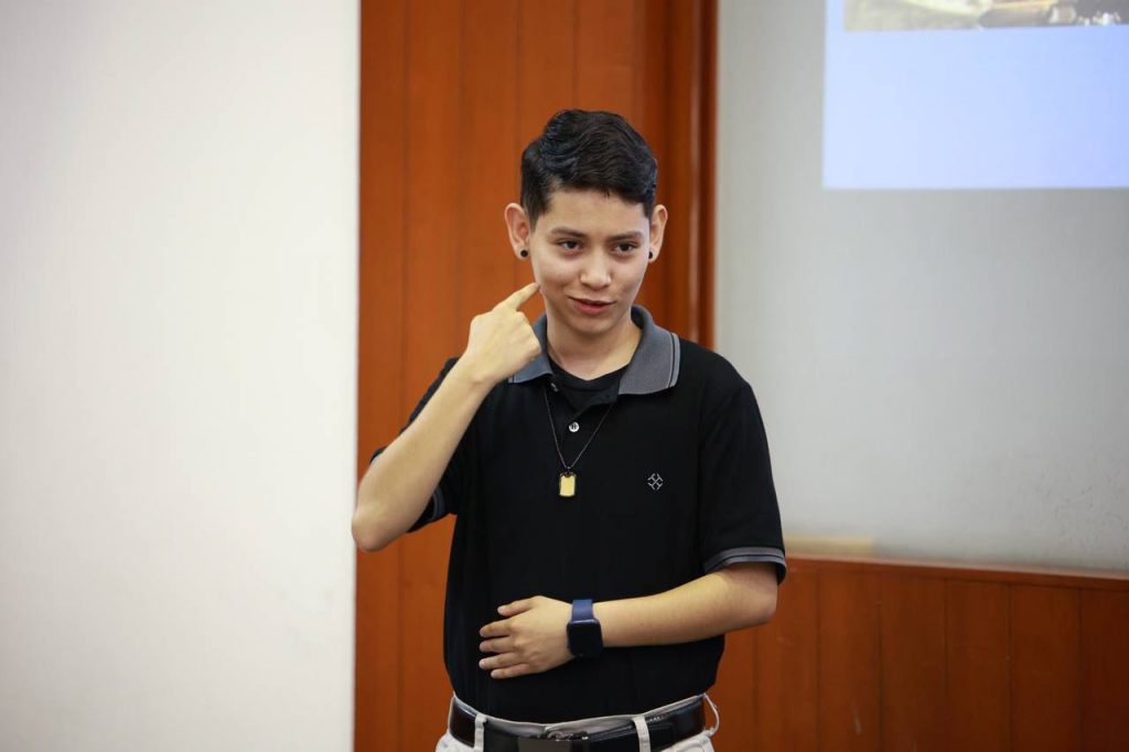 En el marco de la Semana Internacional de la Comunidad Sorda se desarrollaron las ponencias: El derecho a la lengua de señas como derecho lingüístico con Orión Héctor Díaz Flores; Experiencias de éxito en la implementación de educación bilingüe bicultural para personas sordas compartidas por Héctor Jazziel González Ramos y Erika Imelda Flores Galindo y la conferencia sobre los Avances y desafíos en la educación inclusiva y los derechos lingüísticos por Eva Garay Aguilar y Wendy Josefina Camacho Barba los ponentes fueron apoyados por intérpretes.