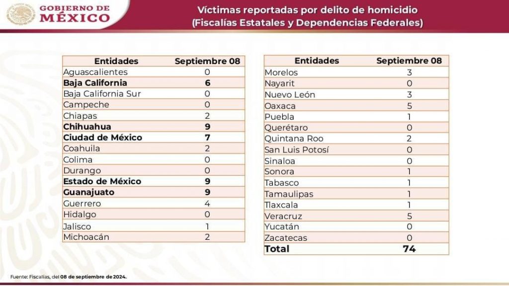 De acuerdo con el último informe del Centro Nacional de Planeación, Análisis e Información para el Combate a la Delincuencia (CENAPI), el estado de Nayarit registró cero homicidios dolosos durante el fin de semana del 7 y 8 de septiembre. El gobernador, Miguel Ángel Navarro Quintero, reitera su compromiso con la seguridad y la paz en la entidad.