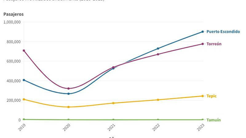 Las terminales aéreas de Tepic y Puerto Escondido ya se encuentran en proceso de renovación, se estima que las obras finalicen en los primeros años del gobierno de Claudia Sheinbaum. El objetivo de ambos aeropuertos es consolidarse como principales destinos turísticos.