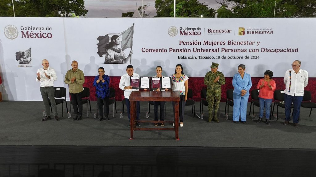 La presidenta constitucional de los Estados Unidos Mexicanos, Claudia Sheinbaum Pardo, destacó que no habrá divorcio entre gobierno y pueblo, esto durante el evento Pensión Mujeres Bienestar y convenio Pensión Universal para Personas con Discapacidad, realizado en Balancán, Tabasco.