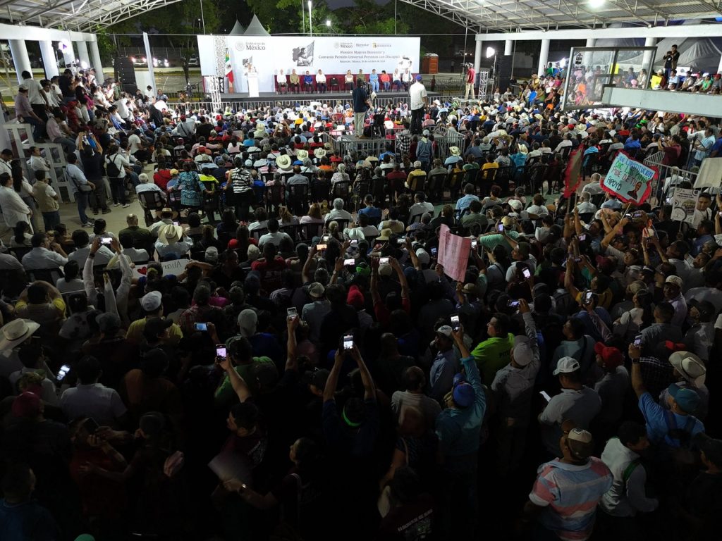Durante su mensaje anunció que en Tabasco el segundo piso de la Cuarta Transformación se traduce en la Pensión Mujeres Bienestar que comienza en el 2025 con mujeres de 64 y 63 años; con la ampliación hasta los 64 años de la Pensión Universal para Personas con Discapacidad, entre otros proyectos como nuevas preparatorias, universidades, implementación de nuevos créditos a la palabra; construcción de viviendas; mejoramiento de la carretera a Escárcega y más.