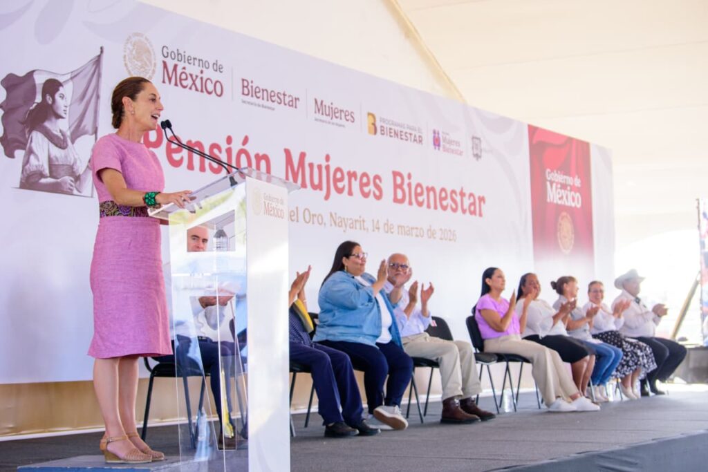 “Es la quinta vez que venimos aquí a Nayarit en año y medio de gobierno. Dije que llegamos todas a la presidencia y al llegar a los 60, Pensión Mujeres Bienestar para todas las mujeres mexicanas. Es un reconocimiento a ese trabajo que hemos hecho siempre. Seguimos trabajando aquí en Nayarit y en todo el país, estamos construyendo más preparatorias, más universidades, ya saben que tenemos el programa IMSS Bienestar, es un nuevo sistema de salud que nos ayuda aquí el doctor Navarro muchísimo para fortalecer el sistema de salud de Nayarit. Me dio mucho gusto estar con ustedes. Vamos a seguir trabajando en Nayarit, y con el gobernador y a seguir apoyando siempre al pueblo de Nayarit. ¡Que viva Nayarit!”, enfatizó.