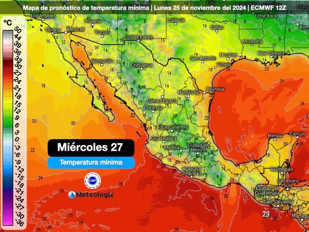 Esta semana continuará ambiente muy frío a gélido en zonas y sierras altas del noroeste, norte, centro, valle de México, oriente y sur del país, se prevén temperaturas mínimas de 0 a -5 ºC con heladas.