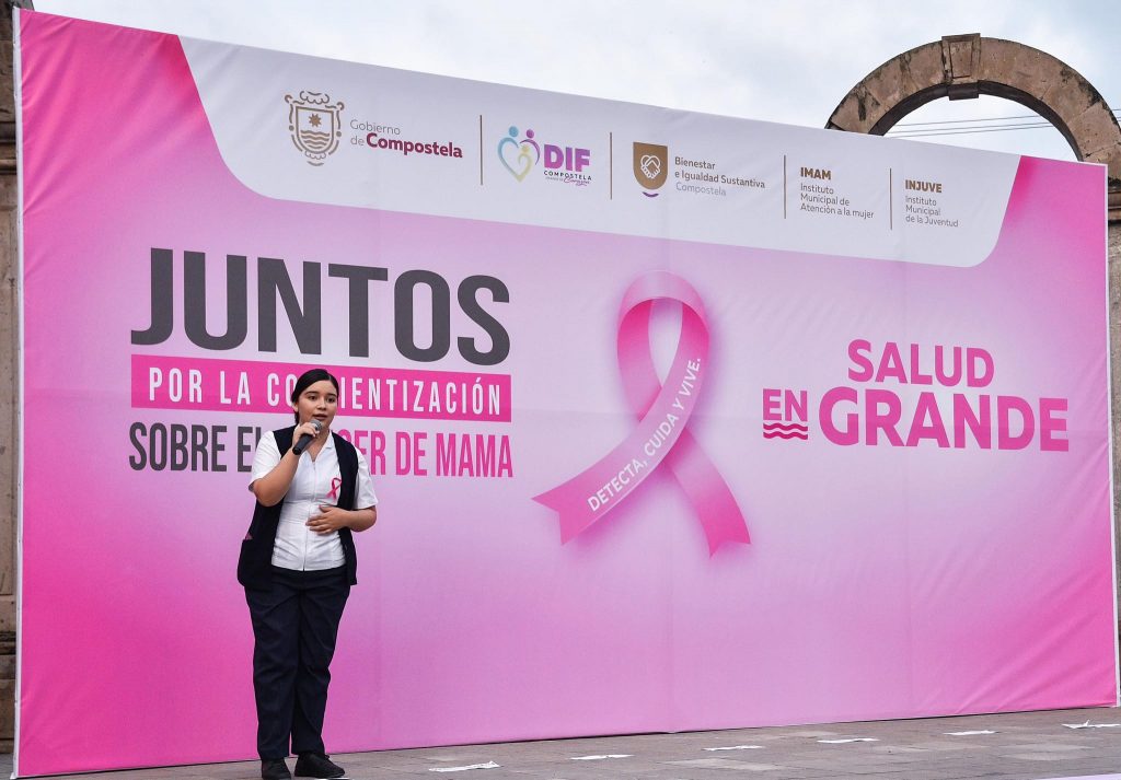 En la plaza principal de Compostela, se realizó un emotivo evento para generar conciencia sobre el cáncer de mama y promover la importancia de la detección temprana.