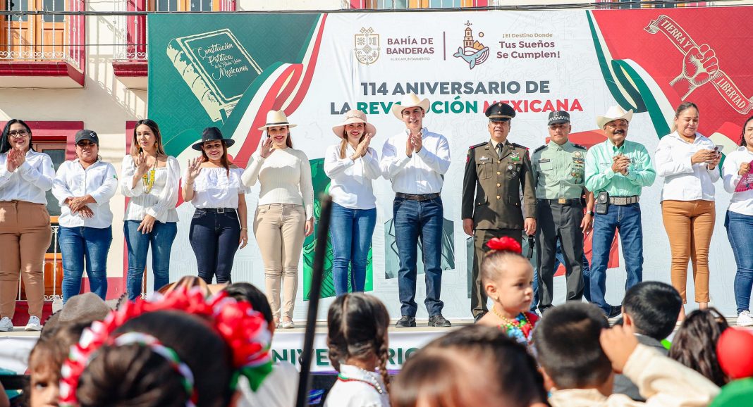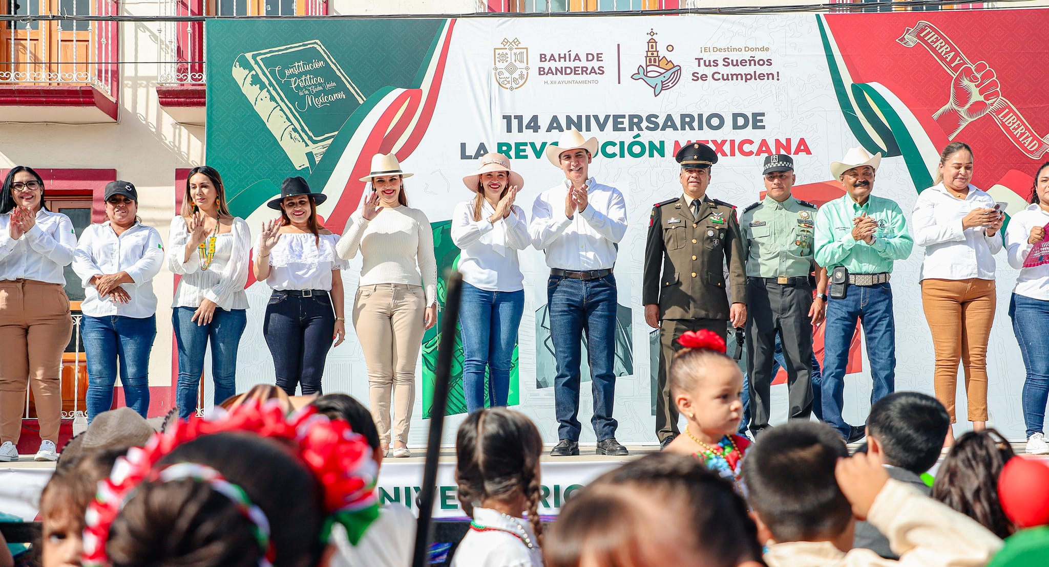 Bahía de Banderas, Nayarit; 20 de noviembre de 2024.-Con un emotivo acto cívico y un colorido desfile, Bahía de Banderas celebró esta mañana el 114 aniversario de la Revolución Mexicana, recordando la lucha histórica que sentó las bases de los derechos políticos y sociales en el país y culminó con la promulgación de la Constitución de 1917.
