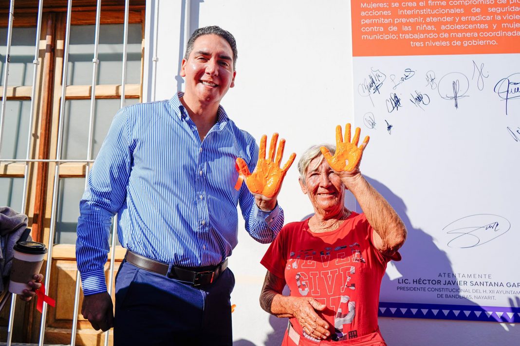 Previo a estos eventos, por la mañana, Héctor Santana reafirmó su compromiso con una vida libre de violencia para las mujeres, mediante la firma de un compromiso en el que participaron el presidente y los directores del Ayuntamiento. Como símbolo de unidad, plasmaron sus huellas de manos pintadas de naranja sobre la fachada de la presidencia municipal.