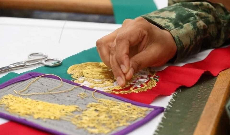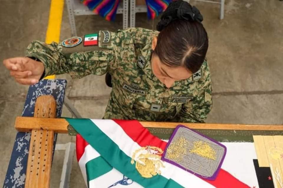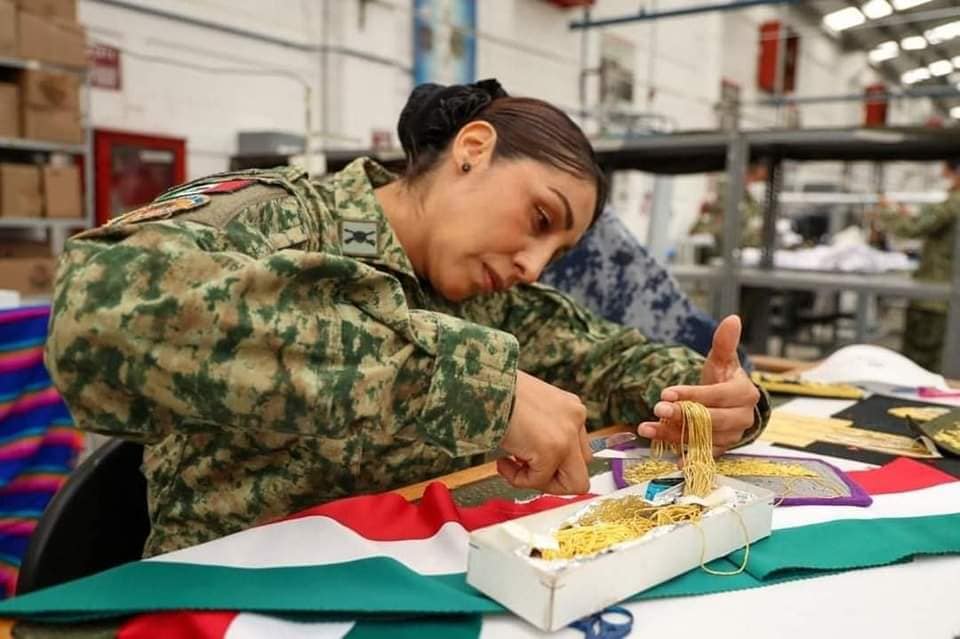 Ella es Evangelina Rentería de la Cruz, la soldado de la Secretaría de la Defensa Nacional (SEDENA), encargada de confeccionar el escudo para la Banda Presidencial que el presidente de México, Andrés Manuel López Obrador entregará este martes 1º de octubre a la presidenta electa Claudia Sheinbaum Pardo.