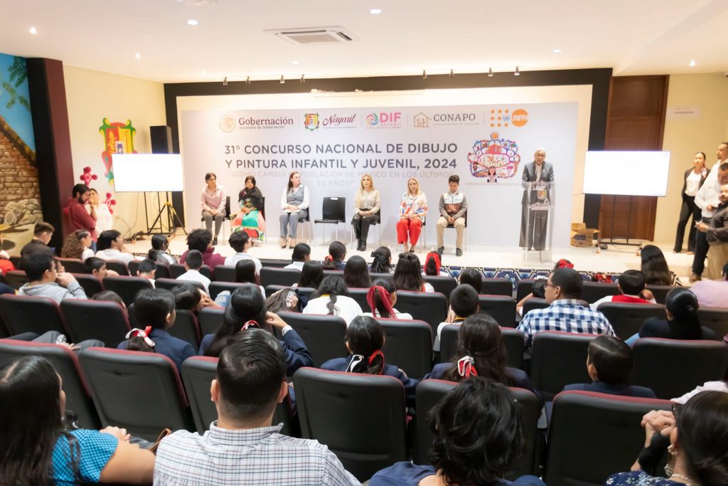 La doctora Beatriz Estrada Martínez, presidenta del Sistema DIF Nayarit, encabezó la ceremonia de premiación de la etapa estatal del 31 Concurso Nacional de Dibujo y Pintura Infantil y Juvenil 2024 del Consejo Nacional de Población (CONAPO) y el Fondo de Población de las Naciones Unidad en México (UNFPA), en coordinación con el Consejo Estatal de Población, celebrada en la galería Nayarte, en Tepic.