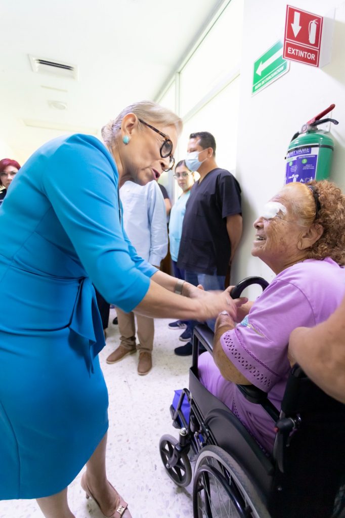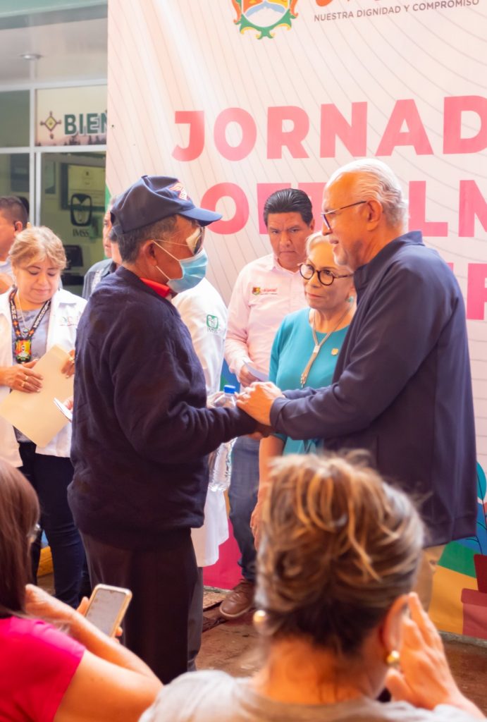 “¿Qué es lo que perseguimos? Que ustedes recuperen su salud visual, que ustedes tengan la oportunidad de realizar sus actividades como cualquier otra persona. Sé que la edad es lo que a muchos de ustedes les ha dado como resultado este problema de cataratas o de pterigión, pero también hay personas jóvenes que tienen el problema y para eso estamos, para poder ayudarlos, atenderlos y lograr el bienestar de cada uno de ustedes, de cada una de sus familias, ese es el principal objetivo de este gobierno y del DIF estatal y del IMSS Bienestar”, compartió.