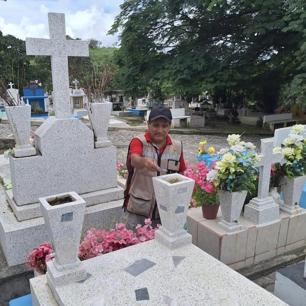 El Gobierno de Tepic continúa con trabajos de abatización en piletas y floreros de los diferentes panteones de la ciudad, a fin de prevenir la propagación del mosco transmisor del Zika, Dengue y Chikungunya; por ello; hoy personal de la Dirección de Sanidad visitó el Panteón en la localidad de Lo de Lamedo.
