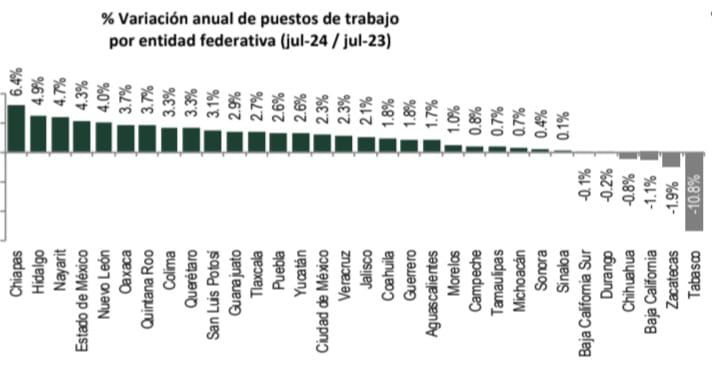 De acuerdo con datos del Instituto Mexicano del Seguro Social (IMSS), en los primeros siete meses del año, Nayarit se mantiene como uno de los principales generadores de empleo en el país, destacando así que al mes de julio, la entidad acumula un poco más de 188 mil empleos, logrando consolidarse como uno de los principales generadores de empleo en México, gracias al compromiso del gobernador, Miguel Ángel Navarro Quintero, en incentivar la inversión y el desarrollo en la región y la generación de empleo ha sido una de las prioridades de su administración, para que haya bienestar y progreso en las familias nayaritas.