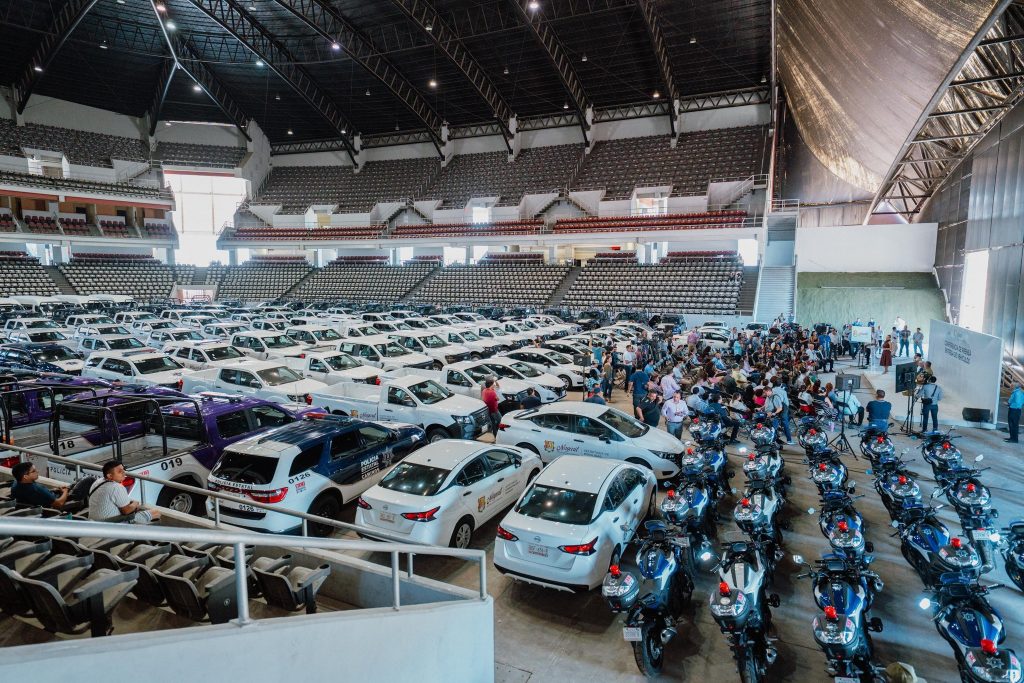 En este marco, Navarro Quintero hizo entrega de124 vehículos nuevos a secretarías y OPD’s para mejorar la eficiencia y eficacia en la atención a la ciudadanía.