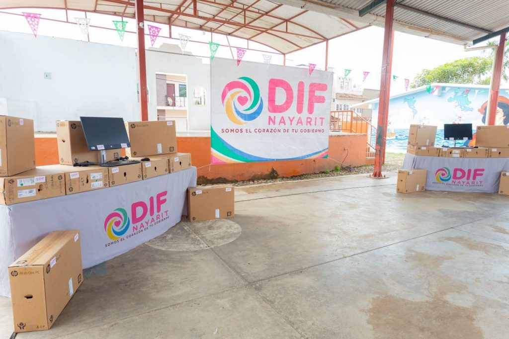 Reafirmando su compromiso con el impulso a la educación en el estado, la presidenta del Sistema DIF Nayarit, doctora Beatriz Estrada Martínez, encabezó la entrega de 20 equipos de cómputo para la creación de un aula especial con dichos equipos, ello en la Escuela Primaria “Último Emperador Azteca”, ubicada en la cabecera municipal de Compostela, lo que beneficiará a 382 alumnas y alumnos.