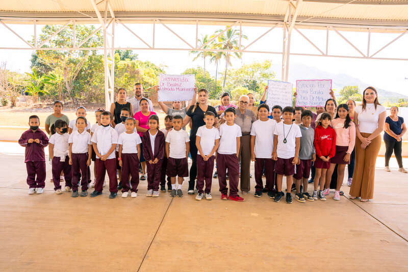 La presidenta del Sistema DIF Nayarit, Beatriz Estrada Martínez, encabezó la entrega de un domo escolar, así como la construcción de un muro y trabajos de pintura en la escuela primaria Dr. Julián Gascón Mercado, ubicada en la localidad de Huaynamota, municipio de San Blas. Estas acciones fortalecen la infraestructura educativa y brindan mejores condiciones para el aprendizaje de las niñas y los niños, así como para el personal docente.