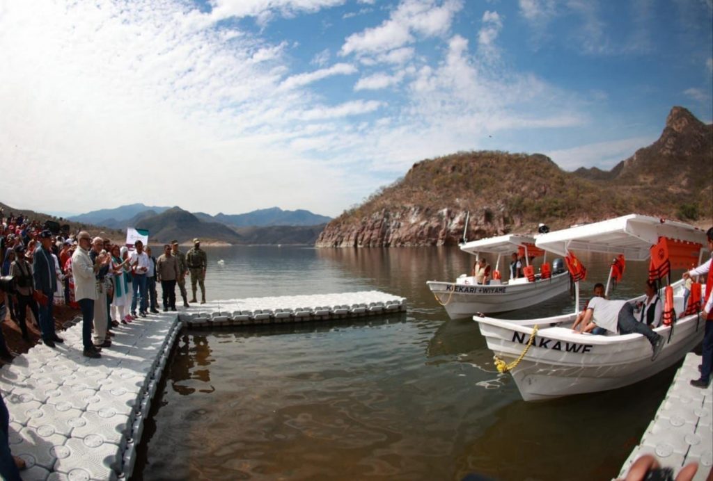 Esta mañana, el gobernador del estado de Nayarit, Miguel Ángel Navarro Quintero, visitó la comunidad serrana de Potrero de la Palmita, en el municipio Del Nayar, donde, acompañado por el secretario de Salud, David Kershenobich Stalnikowitz; el director general del IMSS-Bienestar OPD, Alejandro Svarch Pérez, y su esposa, la presidenta del Sistema DIF Nayarit, doctora Beatriz Estrada Martínez, cumplió el compromiso asumido con las y los habitantes de la zona de la presa de Aguamilpa al entregar dos ambulanchas para el traslado inmediato de pacientes y garantizar su oportuna atención médica.