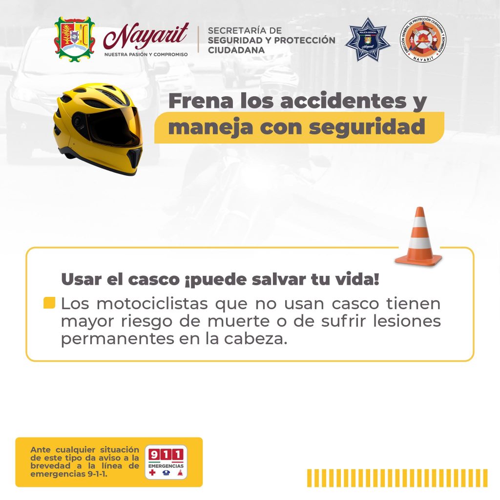 Ante ello, el Gobierno del Estado de Nayarit, a través de la Secretaría de Seguridad y Protección Ciudadana de Nayarit, recordó que el casco es obligatorio y debe cumplir con regulaciones iguales o superiores a la Norma Oficial Mexicana.