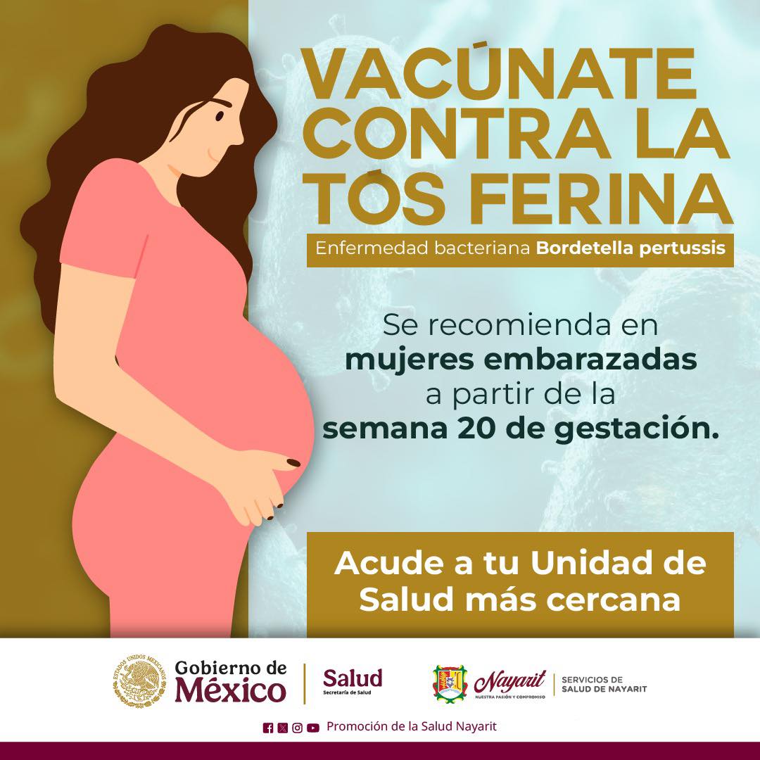 Los Servicios de Salud del Estado de Nayarit informaron que la Tos ferina es una enfermedad respiratoria que puede confundirse inicialmente con un resfriado común, presentando síntomas como escurrimiento nasal, fiebre leve y tos ocasional, por lo que es importante mantenerse alerta y acudir a valoración médica.
