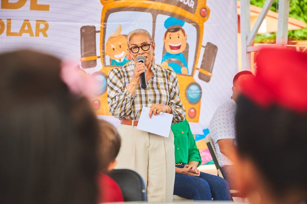 Durante la entrega del programa de Alimentación Escolar en la escuela primaria Niños Héroes, en la localidad de San José de Mojarras, la directora del plantel, María de Lourdes Ahumada Ibón, destacó la dedicación de la titular de la asistencia social en la entidad y agradeció el impulso que ha brindado a las escuelas, gracias a la entrega de insumos que contribuyen a mejorar el aprendizaje y rendimiento académico de las alumnas y alumnos.