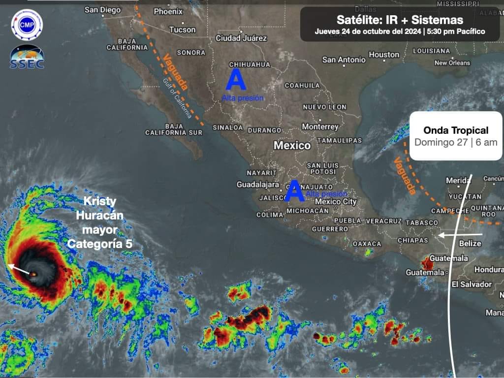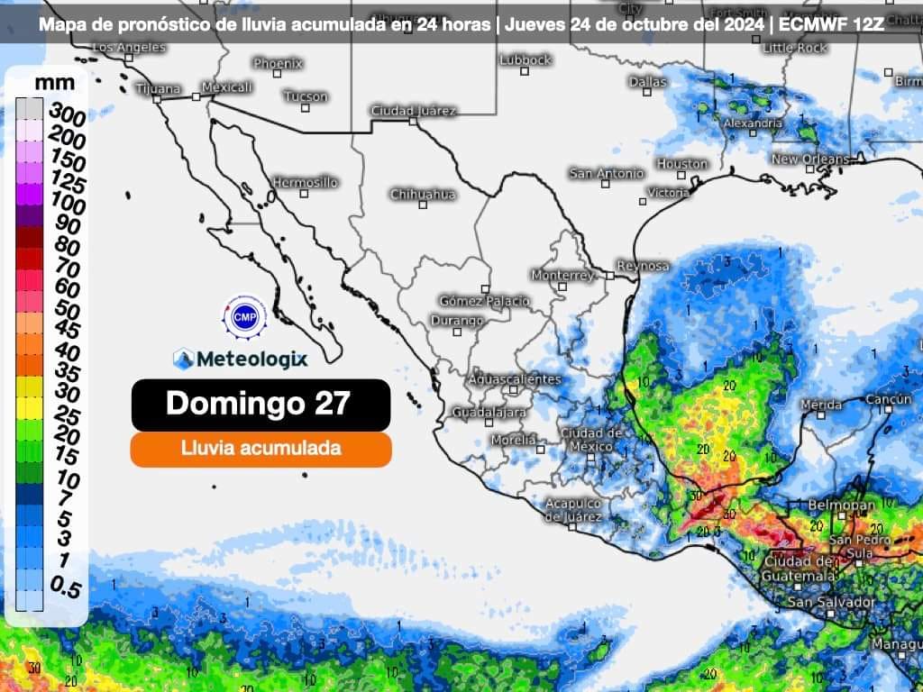 Precaución por lluvias fuertes a muy fuertes en Quintana Roo, Yucatán, Campeche, Tabasco, Chiapas, Oaxaca y Veracruz, durante este fin de semana, debido a vaguada y una nueva onda tropical.