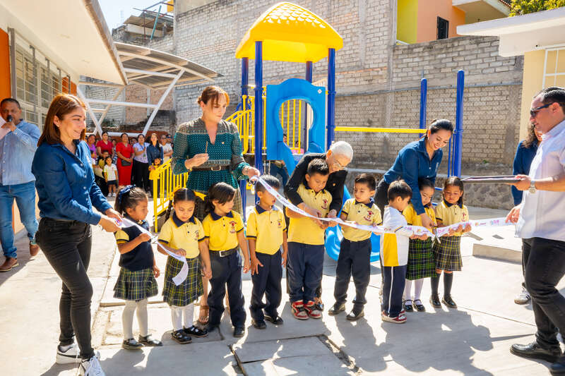 La presidenta del Sistema DIF Nayarit, Beatriz Estrada Martínez, realizó la entrega de mejoras en el preescolar Valle Dorado de Tepic, que incluyen juegos infantiles, la construcción de espacios para cocina y desayunadores, así como la rehabilitación del pórtico, en beneficio de las niñas y los niños del plantel.