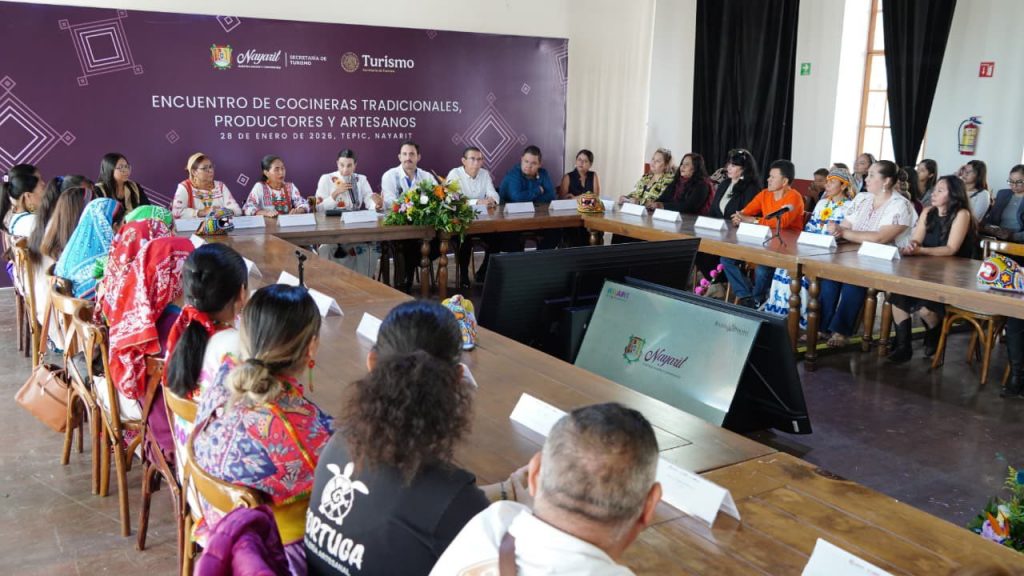 Tepic, Nayarit; 28 de enero de 2026.– En su visita por Nayarit, la secretaria de Turismo del Gobierno de México, Josefina Rodríguez Zamora, acompañada por el secretario de Turismo estatal, Enrique Suárez Del Real Tostado, sostuvo un encuentro con cocineras tradicionales, productores y artesanos, con quienes mantuvo un diálogo directo para escuchar sus necesidades, proyectos y propuestas, refrendando el respaldo a quienes preservan la identidad y el patrimonio cultural de la entidad.