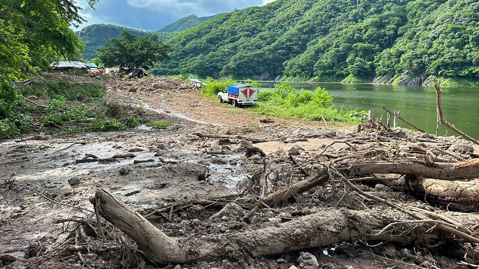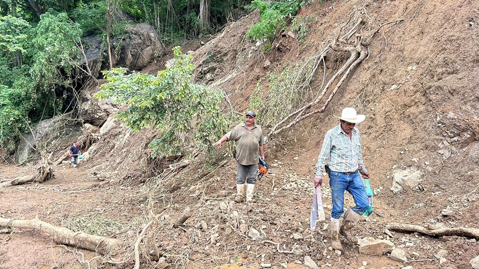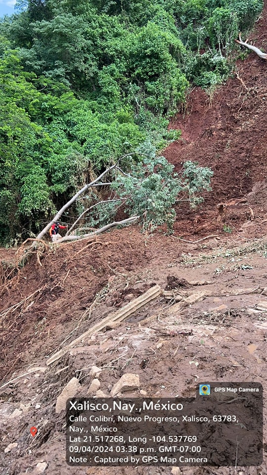La carretera que conecta la localidad de Las Cuevas con Paso de Lozada, en el municipio de Santa María del Oro, tuvo un deslizamiento de tierra de aproximadamente 500 metros lineales, donde no se registraron pérdidas materiales ni humanas.