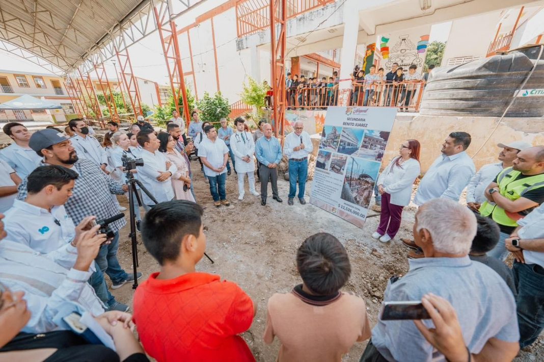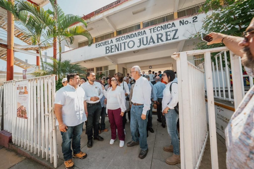 El gobernador del estado, Miguel Ángel Navarro Quintero, en una intensa gira de trabajo por el municipio de Xalisco, visitó la Escuela Secundaria Técnica No. 2, «Benito Juárez», donde se lleva a cabo la demolición del edificio de 4 niveles por daño estructural, y la construcción del edificio de 3 niveles en estructura U3-C.