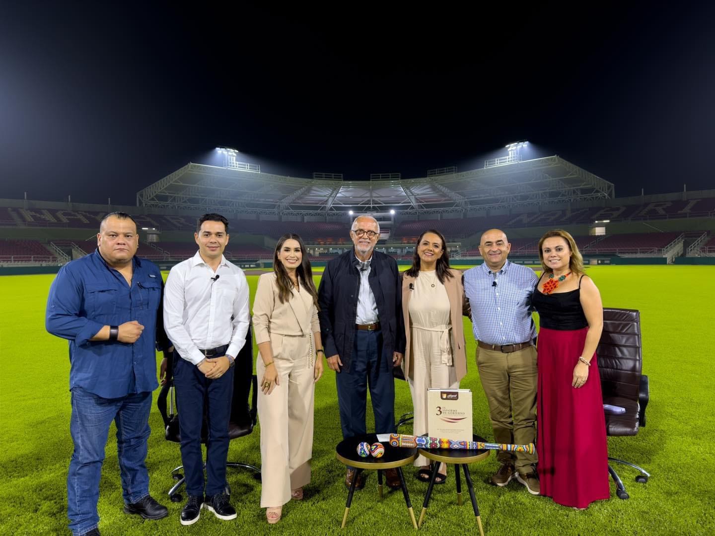El gobernador de Nayarit, Miguel Ángel Navarro Quintero, sostuvo esta noche una conversación con comunicadoras y comunicadores en el nuevo estadio Coloso del Pacífico, donde abordó los logros alcanzados durante su administración, fruto del esfuerzo conjunto de todas y todos los nayaritas.