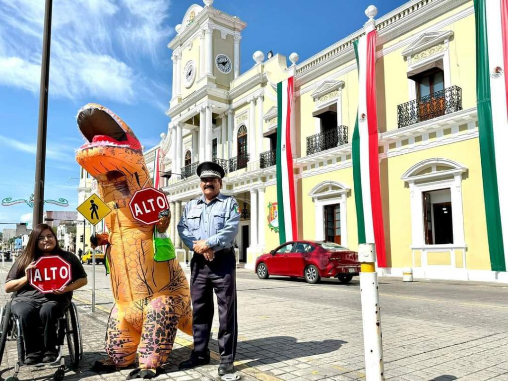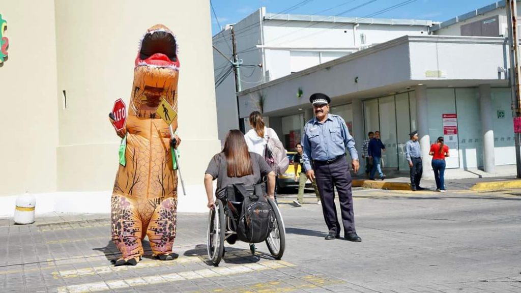 MoVidino sale a las calles, junto con agentes de la Secretaría de Movilidad, para concientizar a peatones y automovilistas sobre el correcto cruce de calles. Además, invita a quienes conducen alguna unidad automotor a ceder el paso a las y los peatones.