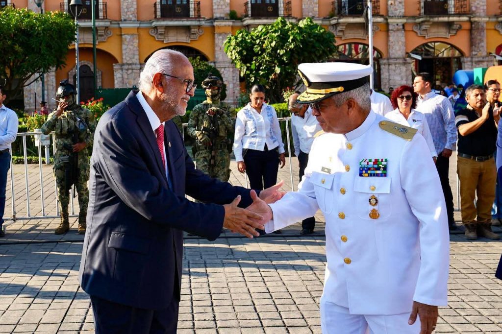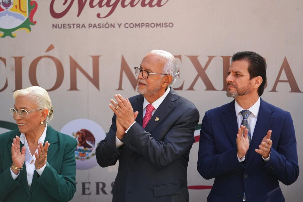 Como primer punto, a las 8 de la mañana, en la Plaza Benito Juárez, el mandatario estatal encabezó, junto a representantes de los poderes Legislativo y Judicial, así como autoridades educativas y militares, el Izamiento de la Bandera a toda asta.