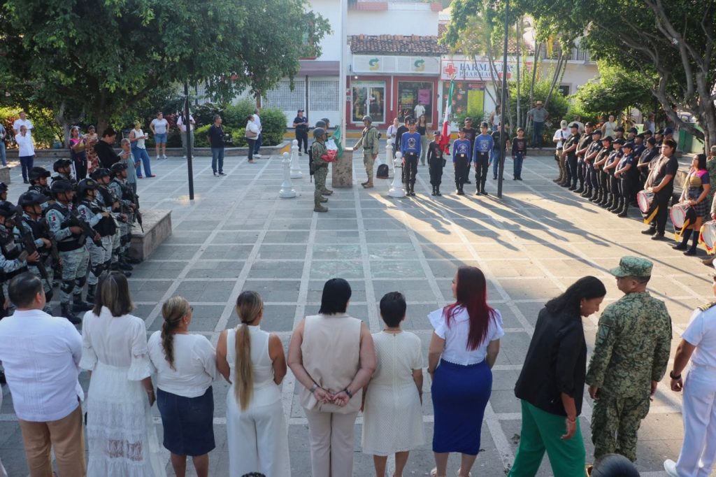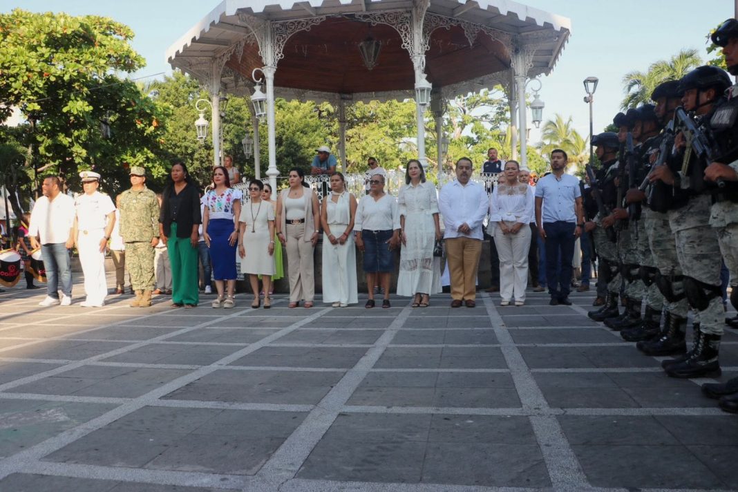 En el acto celebrado en la Plaza de Armas de Puerto Vallarta, se rindieron Honores a la Bandera que se izó a toda asta, por parte del personal, Escolta y Banda de Guerra de la 41ª Zona Militar.