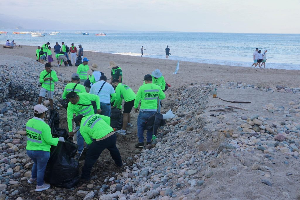 Un equipo de funcionarios municipales y voluntarios comprometidos con el medio ambiente, llevaron a cabo este sábado la limpieza de la playa Los Muertos dejando en óptimas condiciones este espacio que es de todos los vallartenses.